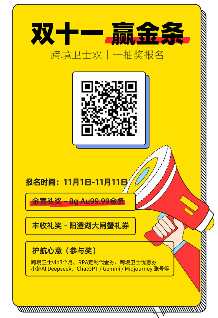 这个双十一我们诚意满满,既要你爆单,也要你稳妥。跨境卫士用安全为增长护航,用福利感谢一路相伴!